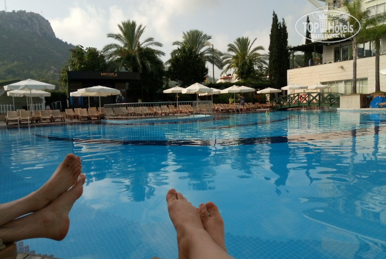 Первый раз отдыхали в отеле расположенном в городе. Для себя минусов я не нашёл. Территория отеля небольшая,но зато всё в шаговой доступности:красивый сад напротив входа, 3 бара с алкоголем, ресторан, дискотека(она есть и напитки там бесплатные с 00-00 до 02-00), бассейн, волейбол, бар с закусками в течении дня(+гёзлеме и мороженка с 15-00до16-00), поздний ужин в ресторане, сауна и турецкая баня. Еды хватало, алкоголь нормальный. Дневная анимация + детская анимация+вечерние шоу. До пляжа дойти-вообще ерунда. Дно песчаное без камней.Свободные лежаки всегда в наличии. На пляже волейбол и будка с безалкогольными напитками. В парке на пляже вечерами работают кафэшки. В ста метрах от отеля есть площадь, там можно покататься на картах(маленькие гоночные автомобили) 7$ 10мин. Также можно взять в прокат мотопедку за 5$ час и объехать весь Кемер вдоль и поперёк. Есть два магазина WIKIKI. Один на главной торговой улице, а другой у главной мечети.Не заметите как дойдёте.Недалеко.По вторникам приезжает вещевой рынок на площадь(100 м от отеля). По понедельникам овощной рынок (на площади около главной мечети). Ближайший банкомат DENIZBANK напротив поворота на главную торговую улицу рядом с парком. Вообщем есть где погулять и прибарахлиться. Много русских на улицах, если что спрашивайте у них как пройти. Почти все торговцы знают русский, что приятно удивило. Если захотите идти на гору. 1 путь: идёте от отеля в сторону горы 100 метров. Затем сворачиваете направо и идёте лесом до таблички Кириш. Далее по тропе. 2 путь: Идёте не сворачивая у таблички до дороги в гору. Идёте по проезжей части до перевала( примерно 1 км) и сворачиваете налево на грунтовую дорогу. И дальше на сколько сил хватит. Вообщем отелем остались довольны, всё чистенько аккуратненько и вовремя. Большое спасибо аниматорам, барменам и всем работникам отеля за их старания сделать наш отдых комфортным.