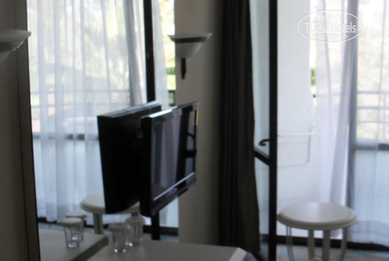 Подскажите, пожалуйста, я правильно вижу, что телевизор как бы на зеркале висит (по Вашему фото).