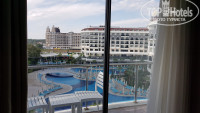 пока мы обедали, нам подготовили номер, доплатили по 10 баксов в сутки за фэмили, дали его на 4 этаже с видом на бассейн, горки и море))))