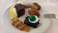из фруктов были арбузы,дыни,сливы,виноград,яблоки,груши,нектарины,мандарины,на ужин один раз давали мороженное,всегда у шефа было что-то вкусненькое)
