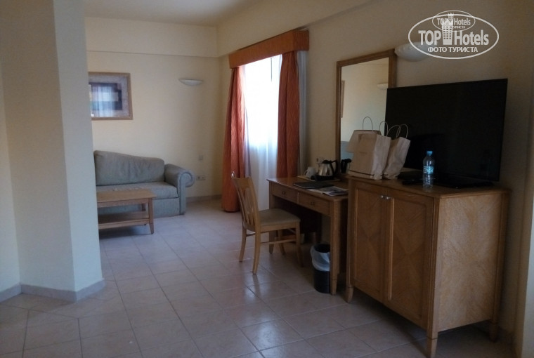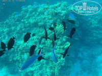 Вторая линия Хилтона Deluxe просто пустовала в начале октября, туда мог заселяться любой желающий. Но кто хочет жить в окружении безлюдной тишины, закрытых баров и бассейнов? На море оттуда возит автобус. Постепенно стали заселяться на вторую линию прибывшие арабы. Их в отеле много, но и наших было немало. Немцы, испанцы и другие национальности. На пляже познакомились с женщиной из Великобритании, а в баре видели семью даже из Аргентины. Мы жили на первой линии Resort почти у моря в просторном номере со старой, но целой мебелью из дерева, текстиль дивана и кресел уже плох, кровать просторная, удобная, балкон с видом на территорию соседнего отеля. Кондиционер исправно работал, в номере большой телевизор, включали музыкальный русский канал, пользовались их косметикой: каждый день выдавали тюбик шампуня, кондиционера, геля для душа и лосьона для тела. Подарка молодоженам никакого не было, они сказали, что могут сделать скидку на дискотеку 10$, вход 20$. Не воспользовались. Но за украинскую шоколадку и доллар горничный нам делал красивые штуки из полотенец и цветов на кровати. Едой довольны, слышали неоднократно о скудных кухнях других отелей и поняли, что Хилтон кормит нормально. Здесь нет морепродуктов. Курицу и говядину готовят по-разному достаточно вкусно, то кусочки, то рулетики, пекут, тушат, жарят, рыба одного вида, тунец, соленая. Раз подали тунца жареного, он был вкусным. На гарнир рис разных сортов, печеная картошка, паста. Подливы с бобовыми в основном. Отварные овощи, морковь, брокколи, цветная капуста. Молочные каши и хлопья к молоку по утрам, джемы, мед к оладьям, омлеты с начинками, глазунья, тосты, кексы, круассаны. Ели просто овощи, салатов много, но у них зачастую специфические сочетания ингредиентов. Руккола, листья салата айсберг. Много разных закусок, они на любителя. Сосиски, колбасы и сыры безвкусные, на наш взгляд. Не ели. Супы все вкусные, главное успеть на навар, иначе остается одна юшка. Слойки и тортики очень вкусные. Сладости в большом разнообразии, сложно устоять. Соки правильней назвать напитками, это не соки. Вина, колу, чай, кофе разносят официанты, их нужно звать и ловить, но они стараются. Фрукты: арбуз, дыня, грейпфрут желтый и красный, иногда хурма, гранат, лайм к супам и рыбе. Виноград никакой, финики терпкие безумно. В баре Сансет на пляже дают бургеры с котлетой или бутерброды с тунцом в паре с картошкой фри в обеденное время. Чипсы к пиву в маленьких пачках дают, сколько попросишь. Из бесплатных коктейлей пили джин/тоник и ром/колу. Их алкоголь нормальная альтернатива для недельного отдыха. Советуем брать большие свои стаканчики, чтобы не бегать с малютками пластиковыми туда-сюда. Вкусные коктейли в баре Чиллаут, но платные. Дискотека там же, но её успех зависит от пришедших и музыки, в 23.30 всюду все умирает и закрывается последний бар. Молодежи грустно. Кому нужен ночной движ, вам на платные дискотеки, куда возят аниматоры, или на Сохо по кафешкам. Сохо - гипермаркет без крыши, вечерний проминат. Нам показался унылым. Раз в час включают музыку для фонтана. Анимации в отеле фактически нет, йогу на траве и аэробику в воде по 20 минут проводят ежедневно, вечером когда-никогда какое-то шоу, мистер отеля или бикини, фаер-шоу, танец живота. Но нам она и не нужна была. Рифом мы увлечены были ежедневно. На экшнкамере есть видео с большим ко