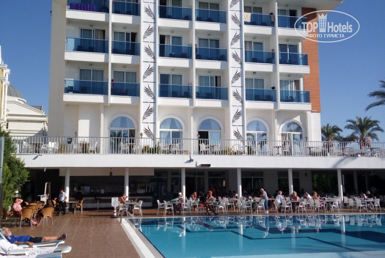 Здравствуйте, отдыхать ездили в Октябре , по приезду ,мы заехали в 21-00 , не было предложено зайти покушать , отвели в номер с выходом окон на дорогу ,очень шумно если открывать окна,т е балкон , номер был двухкомнатный семейный , если включить кондиционер ,то тут сюрприз ждет , т к система воздуховода связанная ,то внизу на минус 2 этаже проводят дискотеки и через вентиляцию идёт запах сигарет ,это очень ужасно , возможно забит фильтр, вообщем очень непонравилось такое расположение номера , уборка номера на 4, чаше на 3-, остаётся песок , на балконе их два было ,ниразу никто не прибрался , даже когда оставляли чаевые , смена белья порадовала , меняли как было любое загрязнение , номер хороший , все новое, есть 5-6 каналов русского телевидения ,по приезду принесли комплимент от отеля вино,соки натуральные 2 евро гранатовый очень вкусный, питание однообразно , из мяса восновном курица ,индейка иногда говядина типа гуляша , но мясо низкого сорта , торты пирожные , практически одни и те же ,супы никакие , хоть самому готовь ,борщ итд, спиртное более менее , пиво хорошее , остальное пить можно , но качество очень низкое , но напиться в ноль можно запросто , как вином так и пивом , пляж - плюс отелю ,хоть и далековато, но зато можно прогуляться , ездит автобус , водитель всегда помогает если вы с коляской спасибо, минут 7-10 пешком и на море , вход хороший , пляж чистый ,но есть свиньи которые кидали окурки , лежаки есть всегда , в отличии от соседнего пляжа , там друг на друге лежали и завидовали грустно , в море заходить лучше ,метров на 100-200 правее оно там теплее , у пляжа отеля в море впадает речка поэтому вода холоднее и может отличаться градусов на 5 , в первый день сотрудники отеля решили ограничить в распитии спиртного , ну это вообще ни в какие рамки отеля 5 звёзд не входит , персонал русских игнорирует , во многом льстит немцам ,мне без разницы , но когда понимаешь ,что говорят про русских ,что одни проблемы просто удивительно, немцы ведут себя отвратительно , дети им носят пиво, курят , орут , рекомендации отелю , сделать отдельно, раздельно на пляже где бар , столовая ,то есть разделить ,для курящих и не курящих ,противно находится в столовой - баре , тем более с маленьким ребенком, да отдельное спасибо персоналу ,отношение к детям хорошее , может это к нам только , вечером в отеле тихо , развлечения только караоке и спать , можно ездить на дискотеку подальше. Пегас вылет перенес с 18 часов на утро , последний день пропал ,в целом среднее впечатление, да отравились на второй день все , думаю из за воды, хотя вроде бутылированная, что касается каксаки тут нет, территории отеля вообще нет .