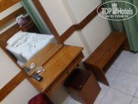 Номер достался в здании ресепшн на 2м этаже номер 208. В номере 2 кровати, 2 тумбочки, шкаф с вешалками!!!что очень порадовало, стол с зеркалом, холодильник, телевизор, ванная комната,балкон. На балконе стол, 2 стула, 3 сушилки для вещей!!!! Первый раз в 3* увидели сушилки. Очень порадовал номер, да и сам отель!!!!