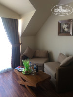 Отдыхали большой компанией - 10 человек. По прилету не оказалось нужных номеров, на следующий день дали другой номер (4 этаж) и дали презент в виде бутылки вина и фруктов. Номер просторный, мебель новая, все чисто.