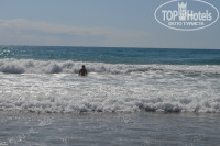 Море выше всяких похвал. Это один из лучших пляжей Турции. Пологий вход в море, что очень хорошо подходит для детей и тех, кто не умеет плавать. Но и пловцы не будут разочарованы. Пляж песчаный, протяженностью больше километра. Вода кристально чистая. Надувные аттракционы прямо в море.