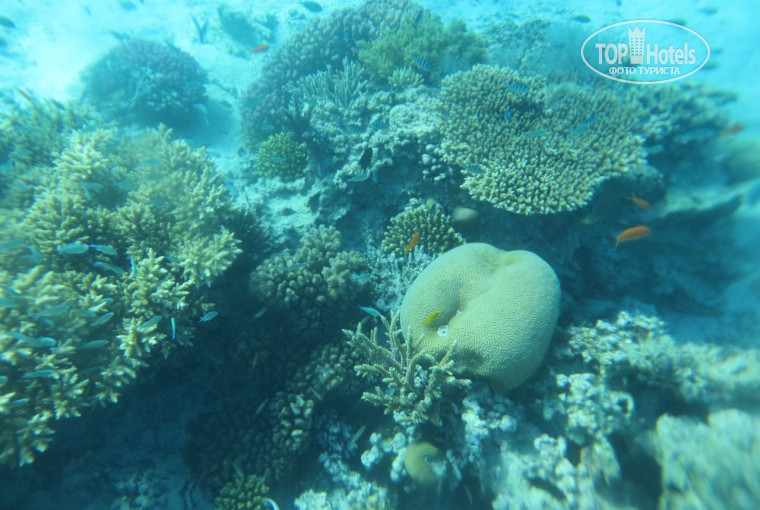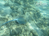 Теперь самое главное..пляж и море.С этим тут все в порядке.Пляж большой ,лежаки есть всегда.Так же есть удобный вход в море.Пирс тоже есть.Ныряя с пирса можно увидеть и рифы и рыбок.Так что маска нужна обязательно.Говорят,что под пирсом живет черепаха,но я не видела.А вот ската видела несколько раз,даже сфотографировала.В отельном магазинчике купила чехол для мобильного для съемки под водой.