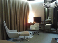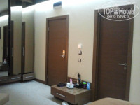 Номер просторный, на полу ковролин. мини-холодильник, тв, кондей, стол, стулья,зеркало с тумбой, кресло с подставкой для ног. Современный дизайн интерьера, разные светильники(настольные,настенные,напольные) панорамные окна-двери- с выходом на террасу. В ванной душевая кабина, раковина,унитаз,биде. Мыло,шампуни, крем для рук, бальзам для губ..пополняли. Полотенца меняли. Шумоизоляция между комнатами хорошая, но номер располагался к входной двери в/из коттеджа близко, было слышно, что кто то зашел, кто вышел. Не мешало..В обще номера располагаются в 3х этажных коттеджах, с общей гостиной и столовой зоной, где есть и ТВ и холодильник и наборы посуды, У каждого коттеджа есть свой бассейн!!!!