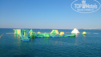 До батутного центра надо спуститься по лестнице с причала и проплыть метров 10 (там глубоко, метров 5, не меньше), потом влезть на батуты из воды (а это нетривиально).