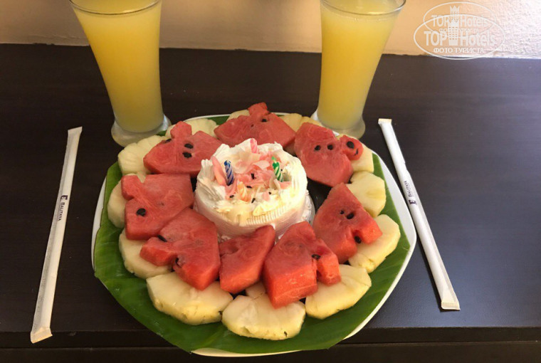 У данного отеля был заявлен презент на день рождения. У мужа как раз он был в отпуске. Подарочек можете увидеть на фото. Поставили его в холодильник, пока нас не было. Тортик вкусный, но мы его так и не доели. Как то не хотелось сладкого на отдыхе.