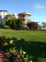 На территории отеля есть бассейн с двумя горками и очень маленьким отдельным детским бассейном, также есть сцена. Рядом с детской комнатой есть очень маленькая детская площадка в виде двух качелей, горки и пары качелей - качалок. Все. Больше на территории отеля нет ничего и территория на этом закончилась, то есть гулять с детьми вечером кроме, как на детской площадке, негде. Вокруг отеля - другие отели, рынки и магазины, прогулятся можно, но темно и детям не интересно.
