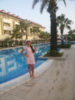 Живу в Казахстане(Павлодар). Вылет был из России (Новосибирск). Выбирали отель по отзывам, бюджету и фото. Территория очень красивая и зеленая, большая. Отель имеет свой пляж, который находится рядом. Ехали по горящей путевке. Отель в это время был с хорошей скидкой . Ехали компанией 4 взр +2 ребенка (11 лет). 550$ на одного взрослого. Брали 2 номера 2+1. Конечно пятерка эконом класса. Еда как во всех отелях Турции. Мясо, рыба, фрукты, спиртные и холодные напитки, закуски, десерты и т.д.. Все включено. Море продуктов естественно не было. Отель в это время был полупустой(там несколько корпусов). (кризис в Турции с туристами, некоторые отели вообще закрыты были, пустовали). Я первый раз в Сиде. Пляж -песок, вход в море песок. Шикарное теплое средиземное море. Бар на пляже тоже был, но закусок почти не было, то есть нужно было идти в ресторан на обед и на ужин (это огорчало). Об этом я сообщила на ресепшене девушке менеджеру (хорошо говорящей на русском языке), что б они