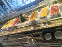 Морепродкуты, жареные креветки и тп, разнообразие - выше всех похвал! Свежие фрукты (маракуйя, папайя, арбуз, зеленые апельсины, дыня , разве что манго не было- это моя боль)))), десерты (ну они для меня были практически все на один вкус), йогурты, выпечка, вкусное мороженое. Приятные коктейли готовят на пляже и у бассейна.