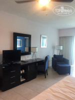 Далее заселение. Корпус 7 ближайший к ресторану. 2 этаж. Вид на бассейн, пруд с фонтанчиком - очень красиво. Фото номера прилагаю. Претензий к номеру никаких нет! Единственное, к чему надо быть готовыми, что это 5 звезд, но не делюкс! НЕ ждите особой роскоши. Все достаточно просто, но чисто и ухоженно. Никакой живности в номере ни разу замечено не было. Номер джуниор очень большой с высокой широкой кроватью, двумя тумбочками, диван + кресло, журнальный столик, тумба под тв, тв (один вроде русский канал есть) , шкаф в коридоре, в котором спрятана изначально гладильная доска с утюгом. Небольшая кофе машина, чай, сахар и тд. В минибаре всегда есть и обновляется: вода, пепси, спрайт и пиво баночное (0,33) по 2 шт.