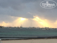 Ладно, решили не заморачиваться, бросили вещи в один номер, побежали на океан!) Тут опять разочарование - вид портит огромная синяя труба, которая тянется напротив береговой линии, отделяя место для купания. Конечно, потом мы узнали, что к трубе прикреплена сетка, которая защищает от водорослей, и надо отметить, что пляж в Мелии достаточно чистый, относительно соседних отелей, но вид портит катастрофически...