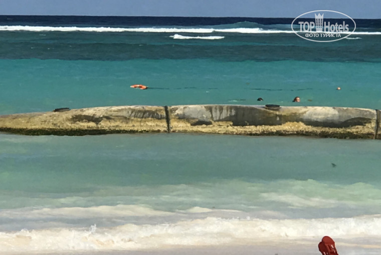 Отдыхали в этом отеле в декабре. Описывать как летели, как заселились,чем кормили и что в номере не хочется-об этом все пишут. В целом поездкой остались довольны. Одним из минусов считаю наличие на пляже у отеля волнорезов в океане. ( фото прилагается - их 4 или 5). Про них много писали, но я не придала этому значения, думала, что они там такие, как в Сочи - перпендикулярно пляжу, а они расположены параллельно пляжу, в шахматном порядке. Поэтому вид на океан испорчен-глаз не радует! Если плаваешь здесь, то ощущаешь себя в лягушатнике. Но это поправимо, можно уйти левее или правее и наслаждаться океаном. В остальном все замечательно. У нас было все включено-нам все нравилось,и всего хватало. Аниматоры молодцы-не давали сидеть, но если не хотели участвовать, сильно не настаивали. Смотреть было весело. Ездили на Экскурсию на Саону от туроператора Анекс тур. Обещали экскурсию Делюкс-должны были на острове быть вдали от всех туристов, но это был обман. Весь Делюкс заключался в накрытом в море столе с шампанским и бутербродами. На Саоне людей было ну оооочень много, сфотографироваться,чтобы никого не было в кадре, было невозможно. Поэтому считаю, без стола в море можно обойтись и не переплачивать 50 долларов на человека. Карибское море-это супер! Экскурсия в Санто Доминго понравилась. Экскурсоводы в обоих случаях были хорошие, правда приколы рассказывали одни и те же. Отель рекомендую, если не смущают волнорезы.