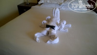 Всім відомо, що в готелях поселення починається о 14:00. Ми прибули до готелю близько 9:00, зареєструвалися і пішли оглядати територію готелю, оскільки нас попередили, що браслети дадуть після 11:00, а поселять щойно з'явиться вільний номер. Об 11:00 на ресепшені нам видали браслети і сказали, що ми можемо заселитися прямо зараз (це було приємним сюрпризом).