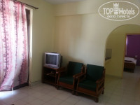 Заселили в корпус 5. Такого от 2* в Индии мы не ожидали!!! Хотя читали предварительно отзывы и слышали про двух-комнатные номера, но не верилось что нам такой достанется! Две комнаты - гостиная с телевизором, работал через раз, но он и не нужен был - некогда там его смотреть))), холодильник, морозил хорошо, диван, 2 кресла вентилятор, балкон; спальня с двумя кроватями соединенными, тумбочка, трюмо с зеркалом, балкон, вентилятор, кондиционер!!! (брали номер без него, с ним доплата 3 тыс вроде была), даже не знаю почему нам так повезло (у подруги ДР был, может поэтому))). Правда в середине отдыха он сломался, пару раз чинили, но все равно не заработал, и мы забили на него, т.к. все равно он нам на халяву достался. Кухня есть - раковина, столешница, мыло, спички. Душ с туалетом как везде в Азии наверное, но просторно. Горячая воде без перебоев, нужно только научиться правильно пользоваться водонагревателем - и будет вам счастье. Что еще понравилось - дизайн стен, не больничный бледный однотон, а с фантазией) (фото прилагается). Единственный минус наверное, мало мест куда повесить сушиться купальники, полотенца, и т.п. Мы в магазинчике не далеко купили веревку кокосовую, 7 рупий моток, и на балконе ее приспособили.