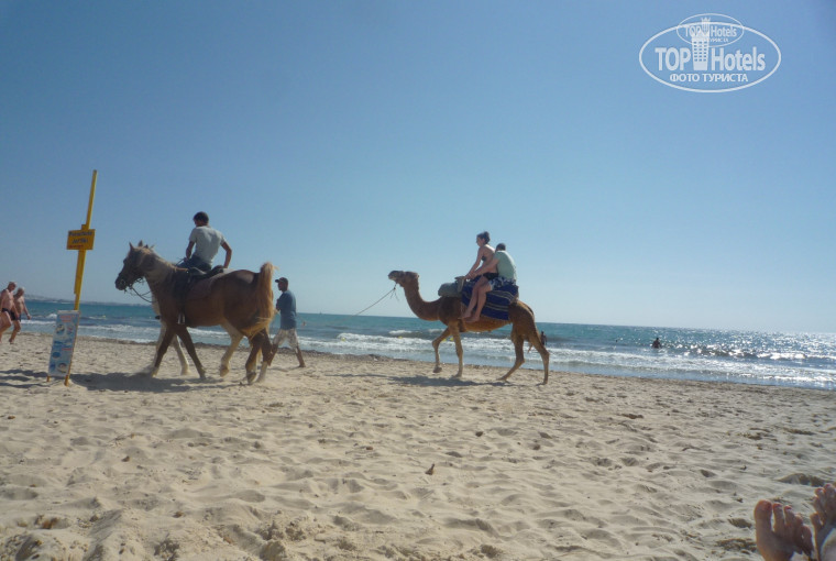 Отель расположен на второй пляжной линии, но до пляжа было добираться удобно - 5 минут размеренным шагом. Пляж, почти всегда был полупустынен, т.к. местные на море, практически не отдыхают, а предпочитают находится около бассейнов, в этом большой плюс. Море и пляж великолепны (мы попали туда, после сезона активности медуз - август), и наслаждались ими в полной мере. Но были конечно и минусы - очень много прибивало водорослей, и убирать их попросту не поспевали. А так же, с учетом того, что по пляжу водили лошадей и верблюдов, для фотографирования с туристами, он был сильно загрязнен остатками их жизнедеятельности. На выложенных мной фото, все это видно. Весь белый песок усеян комками засохшего навоза.