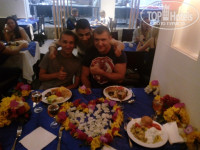 Мы,вообще,спортсмены и питание для нас ВАЖНО! Всего было достаточно:белки,жиры,углеводы.мяса 2-3вида,гарнир 4-5 вида, салаты и соусы в изобилии, много выпечки и сладостей,напитки 3-4 вида. Все вкусно, но чуть островато))) в целом, нам,сторонникам правильного питания, угодили на 99%)))