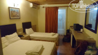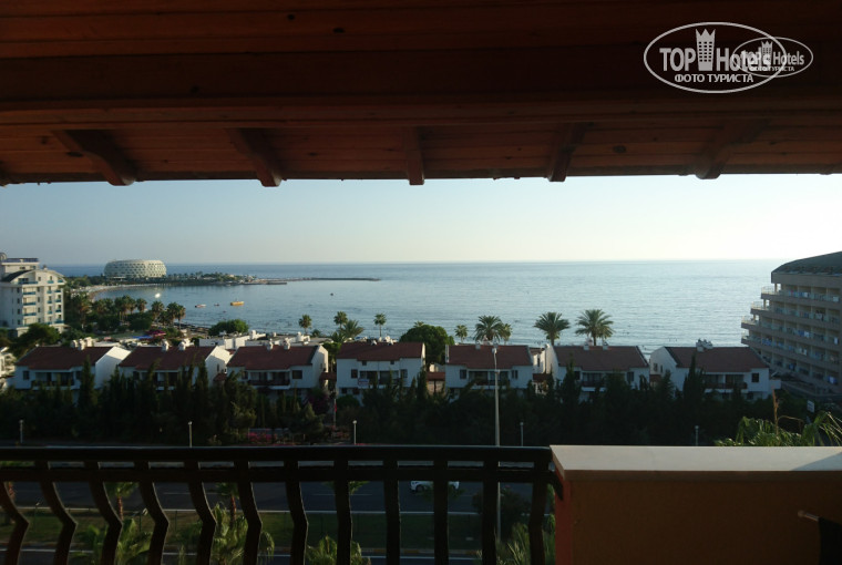 Номер хороший, большой, стоят двуспальная и односпальная кровати которые мы сдвинули вместе. Кроватку для малыша нам не дали, хотя мы и просили, так что он спал между нами. Есть телевизор, который не нужен, холодильник (его не наполняли – мы таскали воду в пластиковых стаканчиках из бара сами, она в открытом доступе), кондиционер работал исправно. В ванной комнате установлена ванна – очень удобно купать ребенка. Мыльные принадлежности все были, полотенца меняли всего раз за пребывание, постельное белье ни разу. Вид на море хорошо, но это и вид на дорогу – запахов выхлопного газа не было, но по ночам шумно, так что если спите чутко – имейте в виду.