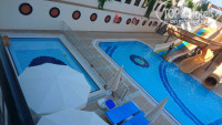 В отеле два бассейна – взрослый и детский и три горки, которые запускались по часам, подробнее не расскажем, так как ехали на море, а в бассейн и дома сходить можно.