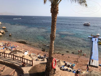 Риф очень классный: будто плаваешь в аквариуме, видели много рыб, скатов, рыб-игл... Мы покупали несколько прогулок по морю - но здесь разнообразие рыб намного больше. Пантон не длинный, но нет входа в море с пляжа для неумеющих плавать. Пляж ступеньками, в сезон лежаков явно не хватит. Полотенца пляжные везде дают и меняют. Очень хорошо для сезона ветров- пляж в бухте и почти без ветра. Рядом пляжи полупустые и зонтики сносит ветер.