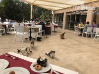 В ресторане чисто, на веранде же шляются кошки, да... Но, уважаемые туристы, они там шляются, потому что вы сами их подкармливаете. Были свидетелями каждый раз... Надо сказать, что кошки нас не трогали, на стол не лезли, сидели не вдалеке, но надо оберегать стол, могут...