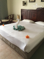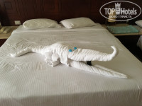 Номер у нас был обновленный, на ресепшене сказали что номерной фонд уже весь обновлен. В номере есть все необходимое, тапочки, шампунь, гель для душа, также кофе чай. В холодильнике всегда пару пачек сока, вода и сладкие шоколадные батончики, пополняется по мере убывания. Уборка каждый день, не зависимо есть долар или нет , дочка рисовала зверушку и нам ее крутили из полотенец))))