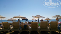 лежаки ужас-ужас. Матрасы видавшие виды, нет ни столиков , ни крючков для одежды, всё на песок кидать? лежаки стоят очень тесно друг к другу!! Места под тентом тоже мало. Потом эти лежаки все начинают передвигать туда-сюда, и вообще какой-то бардак ,мусор тоже встречается, и да, "занятые" полотенцем лежаки ,конечно!