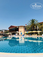 На территории 2 больших (прямо действительно больших!) бассейна, всем хватало места (в одном горки детские, в другом посолиднее, но мы не успели попробовать). На пляже так же достаточно лежаков, "начальник пляжа" дружелюбно помогал принести матрас. Так же имеется детский мелкий бассейн и детская площадка с горками и качелями.