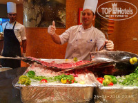 По первой линии прошел слух, что в нашем ресторане готовят лучше и вкуснее и мы, придя на ужин, с удивлением обнаружили очередь на входе в ресторан! Правда ждать пришлось не долго, минут 5-7 и было это всего 3 раза, после чего администратор стал проверять с какой линии гости (специально интересовалась - по концепции отеля, гости питаются в ресторане на линии проживания). Впрочем, когда очереди не было, никто не проверял браслеты и линию проживания в отеле и можно было посещать любой из ресторанов.