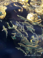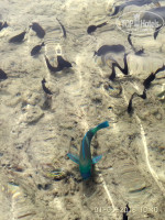 Рыбок я фотографировала с понтона и плавали они над кораллом. В отзыве есть фото пляжа с понтоном, на нем видно что сначала идет песок, потом коралл, а за ним - глубина. Видны катера, которые проплывают рядом с зоной купания и по моим ощущения там было очень глубоко.