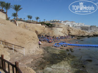 Пляж сделан каскадом, что лично мне очень понравилось. Т.к. когда лежишь в лежаке - смотришь не в затылок туристам, а на синее море. Понтон короткий. Коралловый риф красочный.