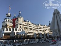 что касаемо территории она не большая... то что внутри отеля... но места хватает всем, даже не смотря на то что некоторые займут шезлонги на целый день а сами не приходят - полотенца загорают ... Еды вдоволь...Разнообразие и каждый день что то новое из деликатесов, закусок много, сладкий стол большой. Пляж не очень, из за того что песок возможно привозной (видимо с примесью глины) при даже небольших волнах в море грязно, она перемешивается с водой, это конечно мое видение ситуации. может по другой причине... мы всего пару раз купались в море... все остальное время в бассейне... есть детские водные развлечения... внимание всех притягивает Водный батут... но какой дурдом на нем твориться.., даже когда закрывается аттракцион ... дети все равно лезут ... не реагируют на замечания толкают других ногами... вообщем ребёнка без присмотра не оставить, здесь конечно укол в сторону родителей этих детей ... Один раз ездили в Аланию на пляж... 20 мин езды в автобусе с кондиционером . 2$ с человека в одну сторону.., пляж там шикарный и песок другой и вода чистейшая даже с волнами (пляж Клеопатры) Лежаки платные, дорожки сделаны дощатые. Раз ездили в торговый центр не подалеку... особо нечего набирать... экскурсии не ездили т.к. всего на неделю приезжали после длительной поездки в европу, именно полежать и погреться... На встрече с гидом, куда всех зазывают под предлогом важности, навязывают экскурсии, а когда ты вежливо отказываешься, грубят с недовольным видом...НЕ ПРИЯТНЕНЬКО, На встрече было хорошее предложение с перелетом на день в Израиль ... ну и все экскурсионные стоящие места... далековаты, Если бы мы приехали на пару недель, определенно нужно было бы куда нибудь съездить посмотреть эту красоту... Выходили гулять за территорию отеля, зелени мало, пустынно, рядом есть небольшие магазинчики, и еще сразу за территорией продают свежевыжатый гранатовый сок.