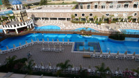 Отдыхали с 8 по 17 мая семьей (я, муж, родители мужа и дочь 2,5 года). Приехали в 7 утра, парень на рецепшн сказал, что заселят только в 2. Растроились. Нас отправили на завтрак. Погуляли и к 10 уже надоело бродить, устали все таки после дороги. Подошли ещё раз на рецепшн и уже девушка Ирина нам дала ключи)) У родителей (с ними жила и дочка) был номер с видом на апельсиновый сад и море)) А вот у нас вид прямо на бассейн, море, башню отеля... Хотя мы покупали тоже с видом на сад, потому что было дешевле. Но я просто прыгала от счастья... Вид нереальный)) Номер чистый красивый, полотенец было 6. И нам на двоих хватало. Мини бар. Фен. Все супер. Комплимент в виде фруктов получили и даже сертификат не показывали. Переоделись и пошли проверять бассейны. Вот тут сразу минус. Все бассейны нереально холодные. Причём такими они были все дни нашего пребывания. Хоть и погода была +25 - +30. Море и то было теплее. До сих пор не понимаю почему так. Детские бассейны хоть и совсем не глубокие были ледяные. Но даже это не испортило нам отдых. Питание просто нереальное. Я готова была расцеловать всех этих поваров. Очень все вкусно. Разнообразно. Были и дни итальянской кухни и рыбный день. И моё любимое пирожное макаронс было не раз)) Но отдельное спасибо за то мороженное каторое было на ужине... Вкуснее не пробывала. Алкоголем муж и родители остались довольны, а я вот только махито могла пить.. Потому как сладких вин или пс шампанского тут нет. Ну это не страшно, алкоголь мне был и не нужен. Перед поездкой начиталась отзывов про плохую уборку и в первый же день оставили 1$ чаевых. Убрали идеально, и даже фигуры из палатенец делали. На второй день уже ничего не оставляли, но нам даже кровать усыпали лепестками цветов. Оставляли на 4й день $ и уже ничего не делали на кровати)) но зато нам помыли даже детскую бутылку)) Вообщем убирали всегда отлично. Персонал приветливый, никаких проблем не разу не было. Единственное, только Ирина поняла когда я уже третий раз просила одеяло. До этого парни турки не понимали и приносили только простыню!!! Напрягали только мужик с массажем и хамамом, женщина с шубами, и Ярослава со своими драгоценностями. Уж больно навязчивые. Пляж постоянно убирали прям на глазах. Думаю отель не виноват, что сами люди кидают бутылки и прочий мусор и хотят чтобы их тут же убрал персонал (это к тому, что все жалуются на грязный пляж). Музыка меня абсолютно устраивала. И на пляже и на бассейне. Конечно, это не тот отель где супер анимации, дискотеки и тусовки, но я терпеть не могу это все, потому то мне здесь было очень круто) Для детей каждый вечер дискотека, дочке нравилось. Сам отель ну нереально красивый... Самый красивый из всех, что видели. Русских не так много и все адекватные. Не заметила "Тагила". Мы не ездили на экскурсии, один раз в Аланию и в дельфинарий сходили пешком. А все потому, что из этого отеля и уходить не хочется. Горки в аквапарке крутые. Особенно оранжевая. Но кругов мало. Все время бороться за них приходилось. Вообщем вот такие впечатления. Ни разу не пожалела, что поехали именно сюда. Все отрицательные отзывы лично нами не подтвердились. Спасибо вам за все, мы очень вас полюбили. Я всем своим людям буду обязательно рекомендовать этот отель.