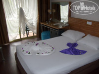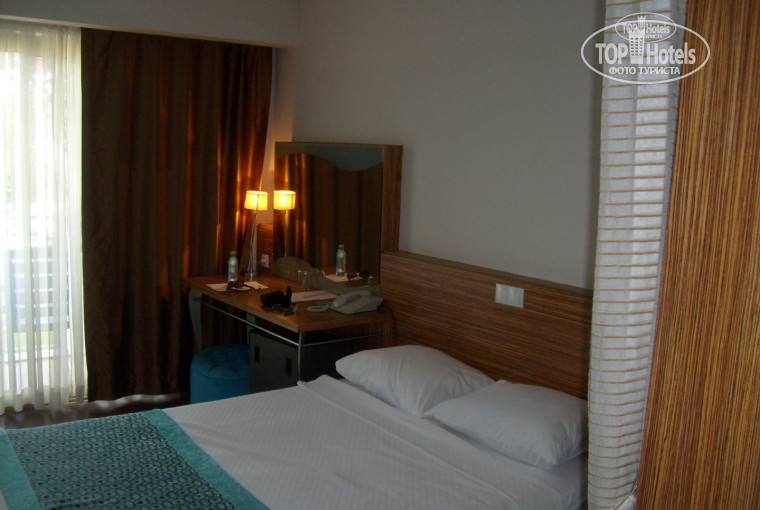 ТЕРРИТОРИЯ: Красивая, ухоженная, зеленая в цветах. Wi-Fi слабый, несколько дней вообще отсутствовал. На пляжа есть бонус))) подключаетесь к соседнему отелю Кристалл, без пароля, летает. Есть один основной большой бассейн, средний и 2 детские лужи. Лежаков у бассейна хватало. Полотенца пляжные брали свои. Собственный пляж ну очень маловат. В мае дополнительного пляжа нет. В мае не в сезон после 9.00 утра лежаки все заняты (конечно и мертвыми душами, кинутыми полотенцами без людей, сами у бассейна, либо в столовой), друг на друге компактно только лежать(((, после 11.00 люди уходили и освобождались места, под тентами можно лежать и в солнцепек. На пляже есть прохладительные напитки, вода, чай, душ, туалет. Путь до пляжа специфический, через задние подъездные пути пятерок, грязно((( и дымно. Вход галька, больно, что заходить, что выходить, нужна специальную обувь. Можно с пирса соседнего отеля по лестнице. Есть возможность пользоваться в отеле бесплатно хамам, сауна (рекомендую), закрытый там же бассейн. Массажи за отдельную плату. Рядом с пляжем отеля водные развлечения: катер, парашют, скутер, катание на таблетке, банане и т.д. Бесплатно каноэ)))). За отелем, если выйти на лево и сразу еще раз на лево приезжает базар (дни уточняйте), там в разы экономичнее купить подарки, сладости, текстиль.