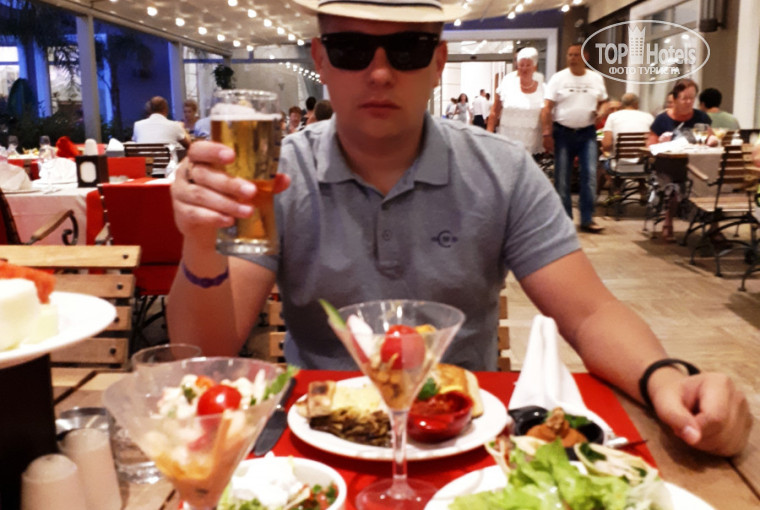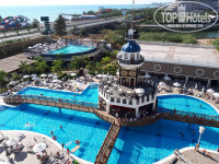 Приехали мы в отель рано утром. На ресепшене нам одели браслеты и мы пошли сразу завтракать! Заселение произошло не сразу, а только в 14:00. Хотя уверен, что свободные места были. Ровно в 14:00 нам дали ключи от номера. Номер достался с видом на бассейн.Я люблю чтобы был красивый вид с балкона, поэтому менять ничего не стал номер полностью нас устроил и мы стали распаковывать вещи. развесили их на Пляж конечно оставляет желать лучшего. Но это не повод унывать! И мы ходили плавать с пирса отеля он путевку брали в октябре. лежаков на море всегда хватало. Так же всегда были свободные лежаки где горки. Питание в отеле было просто шикарным! Мясо наверное всех видов какое только есть.( в разных вариантах) рыба... даже красная иногда была, креветки, мед в сотах и многого другого. Пироженки и торты я иногда кушаю Ходил просто смотрел и фоткал. Очень Красиво Два раза посещали ресторан " Аля карт" турецкий и рыбный. Рыбный больше понравился) Анимации в отеле практически нет. только для детей мини-диско. Отель очень красивый! Красивые диваны и кресла! Шикарные люстры! Всё это для самых любимых туристов! Для вас наши дорогие! Всё очень стильно и со вкусом! Территория отеля я бы сказала не большая, но красиво. Интерьер очень интересный, как будто круизный лайнер внутри, высокие потолки и красивые люстры, а вот с наружи как большой вокзал из американских фильмов. Хотя наверно задумка другая, не задавалась этим вопросом. Еще на территории есть что то похожее на маяк, или девичья башня, мы такую видели в Стамбуле. Вообще отель довольно новый, 2-3 года ему всего. Необычный стиль я бы сказала, видно что людей хотели удивить. И скажу честно чувствуешь себя очень комфортно в нем. Совершенно оправдывает свои деньги Раз в неделю недалеко от отеля приезжает турецкий базар! Там есть хорошие вещи по оптовым ценам!))Вообщем можно даже не ездить в саму Аланию на рынок. Всё можно купить на приезжем базаре и рядом в торговых центрах. Торгуйтесь! Турки всегда идут на встречу и снижают цену. Брали экскурсии джип сафари. по 20$/ персонал очень приветливый напитки в баре меняли каждый день. Вообщем отдых удался!