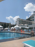 Мы отдыхали с мужем с 9мая по 16.Доехали быстро,засилили в 14:00как положено,номер с боковым видом на море и гору,в центре другой отель,дорога с постоянным шумом от машин,но меня это не напрягает,мужу не нравилось,в номере чайник, одноразовые пакетики чай, сахар,кофе,в холодильнике вода,кола, Спрайт.тапочки ,гель для душа, кондиционер для волос и тела, шампуня нет!набор ниток с иголкой,шапочка для душа,у нас были две односпальные кровати и их не было возможности сдвинуть,пол скользкий,они постоянно разъезжались..)спали на разных!ты работает,русский каналов3-4?!в ящике лежит список каналов,номер убирали Ежедневно,что очень радует, только не хватает ведра под мусор в комнате.лифт раб очень быстро,их 4.мы жили в основном корпусе, пляжные полотенца меняли без проблем,но по выезду сказали,что их не хватает и будут менять только раз в день! питание нормальное,есть мясо,рыба без изысков,гарниры овощи,фри,макароны,сладостей полно, фруктов не очень много, арбузов не было,мидии,криветки не встречались(.за кофе как всегда очередь,то кружек нет,то порошок закончился,приходить лучше через час после открытия ужина,обеда,набегают люди и очередь ,утром нормально.Бассейны чистые,для детей маленькие не глубокие.горки три.нормальные!)снек бар рядом с мини клубом хороший, можно на обед туда,там пива и лепешки пекут, очень вкусно!14-16ч.бары все хорошие,но лучший у рецепшена.шампанское,мохито,джин,виски все есть,коктейли,пиво..и т.д.пляж: идти быстро минуту,через дальний корпус,там тихое место с бассейном,очень красиво и спокойно,качельки есть с видом на море, вообще вид восхитительный у отеля,горы просто красота,пляж не маленький,места и лежаки всегда были,пирс тоже с лежаками,бор на пирсе но безалкогольных напитков.вход с берега галька,есть мостик,я заходила так,муж с пирса прыгал.анимация у бассейна постоянно почти, Очень веселая и зажигательная, музыка постоянно почти ,все хиты 2018г,молодежные,))что ещё больше бодрит..анимация вечером тоже хорошая