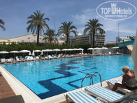 Большой с постоянной глубиной 1,4м. Совсем не чувствуется хлорка, но при этом удивительно чисто. Специальный дядя то и дело замеряет уровень хлора в воде. Горки веселят и детей, и взрослых, никак не мешают плавающим в бассейне. Лежаков с матрасами и зонтиков всем хватало. Звучит популярная музыка. Еще есть малышковый бассейн с глубиной 40 см.