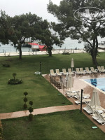 Так как отпуск был не запланирован (основной отпуск в августе будет), выбирала недорогой 5* отель, на момент покупки тура Dosinia был один из самых дешёвых с системой UAL. В отель приехали 07.05. в 11-00 утра, заполнили на рецепции анкету, и нас отправили завтракать. Пришли в ресторан, а там один хлеб ))) просто девушка на рецепции была не в курсе, что завтрак у них до 10-30))) извинилась, сразу предложила заселить нас (тех, кто ждали заселения в основной корпус, заселили только после 14-00, некоторых даже к 17-00). Нас в 12-00 заселили в номер сьюит в б блоке (изначально его и покупали). Номер большой, мебель, сантехника всё в норме, только не работал кондиционер, два раза оставляли заявку, но так и не подчинили за 7 дней). Попросили детскую кроватку-манеж, комплект постельного белья для раскладного дивана для ребёнка, починить кондиционер), пополнить мини бар (хотя бы соки), и ещё одно покрывало (нас было 4, а покрывал только 3). Из всего это принесли только кроватку и постельное, все остальные просьбы проигнорировали (так и укрывались весь отпуск тремя покрывалами). Питание: еда достаточно вкусная, кроме пюре картофельного, но детского меню нет, как было заявлено в концепции. В начале нашего отдыха отель был заполнен примерно наполовину, и с посещением ресторана не было никаких проблем, в любое время можно было и стол найти чистый, и еды хватало. Но с 10.05. отель оказался заполнен 100%, и вот тут каждый приём пищи превращался в квест)))) сначала найди себе свободный стол, потом официанта, который бы там прибрал (несколько раз было, что и сами себе меняли салфетки и сервировали), потом добудь себе еду. Причём к открытию ресторана никогда не ходили, примерно через 30-50 мин, но к этому времени всю еду сметали те, кто приходил к открытию, конечно, всё, что кончалось, старались быстро пополнять, но за это время выстраивалась просто нереальная очередь)))) (с утра за яичницей/омлетом, на обед и ужин - за мясом). Сделали такой вывод - отель просто не был готов к такому количеству гостей. Надеюсь, к основному сезону всё нормализовалось. Лепёшки - это отдельная история. Так как дети не ели пиццу, фри и котлеты из снек- бара, приходилось добывать лепёшки. На вкус так себе, горчат от прогорклого растительного масла, печёт их бабушка в час по чайной ложке, поэтому, чтобы получить лепёшку, нужно отстоять около часа, а того и больше))). Пляж: про него уже много всего писали, всё так и есть. Очень маленький, зонтов нет, под тентами находиться проблематично, под ними очень душно, на пирсе, думаю, лучше, но мы с детьми, поэтому отдыхали на берегу. Больше всего понравилась анимация, парни, Сергей и Влад, их шеф Джем, большие молодцы, днём очень старались поднять всех с лежаков подвигаться!)) бармены тоже молодцы, хоть и были очереди в баре, они очень старались! Сервис и обслуживание: Самый большой минус в отеле. Уборка нормальная была два раза за семь дней, один раз просто застелили постель. Мини бар не пополнили ни разу, кондиционер не починили, хотя просили три раза на ресепшн и релейшн гест, реакции никакой ? в ресторане некоторые официанты просто создают видимость работы. Но самое обидное, у нас выезд из отеля ночью был, отель оплачен до 12-00 дня, попросили ланч боксы с собой, детям перекусить, Марина - релейш гест, пообещала , что нам их подготовят. Когда спустились к выходу, турок на ресепшн минут 10 обещал, что сейчас всё 