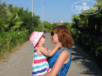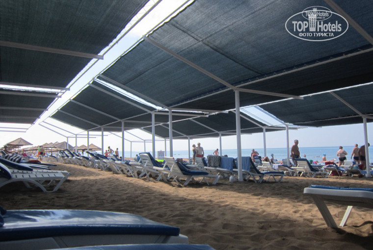 Отдыхали с семьей в этом отеле. Ехать далековато, но заселили быстро. Дали номер на втором этаже - номер просторный и всегда был бесплатный wifi. Пляж очень понравился - песок и пологий вход. Дочь была в восторге. Мне очень нравятся отели со сплошными навесами на пляже, не приходится таскать лежаки от солнца, мест всегда хватало. До пляжа постоянно курсирует довольно новая маршрутка с кондиционером и двумя веселыми водителями. На пляже есть бар где всегда можно попить (выпить) и перекусить. Днем там пекут вкуснейшие лепешки с разными начинками. Кормили в отеле очень хорошо - всегда либо мясо, либо рыба, либо курица, много овощей и фруктов, арбузами объедались. Пару раз было театрализованное представление с выносом огромного мороженого и барабанами. Виски, пиво, вино вполне приличного качества. Территория немаленькая, но гуляли в основном по поселку и по променадной дороге которая начиналась перед отельным баром на пляже и уходила вправо. Там шикарное место для прогулок среди различных деревьев. На ней же есть бесплатный минизоопарк где дочь кормила кроликов морковкой и яблоками, а чуть дальше несколько небольших детских площадок. В самом отеле анимация начиналась достаточно поздно и после детской анимации (вполне сносной) мы сразу шли спать. На долмушах (маршрутках) можно легко добраться до Сиде где куча магазинов и базар на котором можно купить фруктов и овощей. Отель, поселок и прогулочные зоны очень понравились, рекомендую.