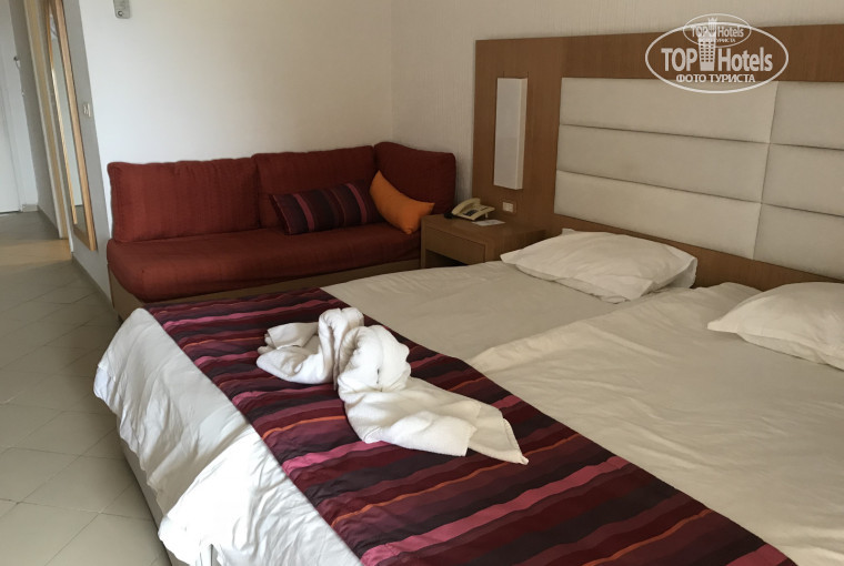 У нас было 2 номера: на 2 и 3 человека, к концу отдыха всё трансформировалось в 2 и 2 человека -у нас забрали все принадлежности постепенно и ребенку пришлось спать с нами (мы ездили на экскурсии и иногда приходили в номер поздно и уже не было сил просить и бегать), а кровати там не двуспальные - а сдвинутые с ямой посередине - не удобно было.