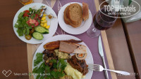 В баре на пляже различные напитки, коктейли. мороженое, овощи, фрукты, лепешки с разными начинками, гамбургеры. Можно даже на обед не ходить.