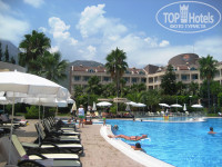 Хорошая 4-ка, лучше многих бюджетных пятёрок! Не смотря а 2 линию , очень удачно расположена по отношению к пляжу. № минуты по тенистой аллейке вдоль футбольного поля и вы на пляже с хорошим баром. Пирса нет. Пляж не большой. В отеле прекрасные бассейны с гидромассажем и горками. В СПА не ходили. Достойная вечерняя анимация. Близость в торговой улочке посёлка Гёйнюк. Природа красивая. Номера и питание стандартные.