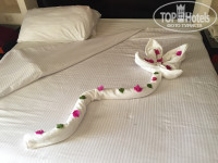 При размещении сразу предлагают самые дальние корпуса (6,7,8), но тут же за пару десятков долларов предлагают «очень хороший» номер в корпусе 5 например. Ещё побольше доплатите, может поселят в номер с видом на море. Но в любом случае номера очень убитые. Мебель старая, кровати скрипучие, стекла битые и заклеены скотчем. Но даже это не самый главный минус! Самое ужасное это питание!!!!! Детям есть нечего, кроме картошки фри с 13 до 17 часов. Но это же не выход. Курица каждый день, иногда недожареная. Если это рыба, то плохо почищенная. Правда финики и дыня была каждый день, один раз арбузы. Все напитки ( так называемые соки) порошковые. Местный алкоголь никакой. Уборка номеров так себе даже если ты не скупишься на чаевые.