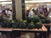 Напитки - фанта, кола, спрайт, газированная вода из фирменных 2-литровых бутылок прямо при тебе открывают. В кулерах - да, порошковые. Но лучше, чем ЮПИ.