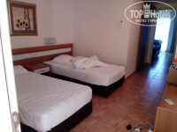 В отель мы приехали около 8 утра. Номер бронировали Club стандарт. Заселили сразу в СЕМЕЙНЫЙ номер 1205 на первом этаже без просьб и доплат! Номер состоял из двух комнат. Первая проходная с двумя кроватями и окном в коридор. Вторая с большой кроватью и дверью. Между ними ванная комната с дверью «на салазках» (закрывалась хорошо). В каждой комнате плоский телевизор и тумбочки. В целом мебель приличная, не убитая. В номере ощущалась влажность, но не критично. Порожек в душевую с элементами плесени, из слива слегка потягивало канализацией. При закрытой дверце душевой запах не чувствовался. Балкон большой, стол, три стула и сушилка (местами ржавая). Пол плиточный, голоса соседей не беспокоили, но вот если наверху переставляли мебель или по коридору горничная везла тележку – шум ощутимый.
