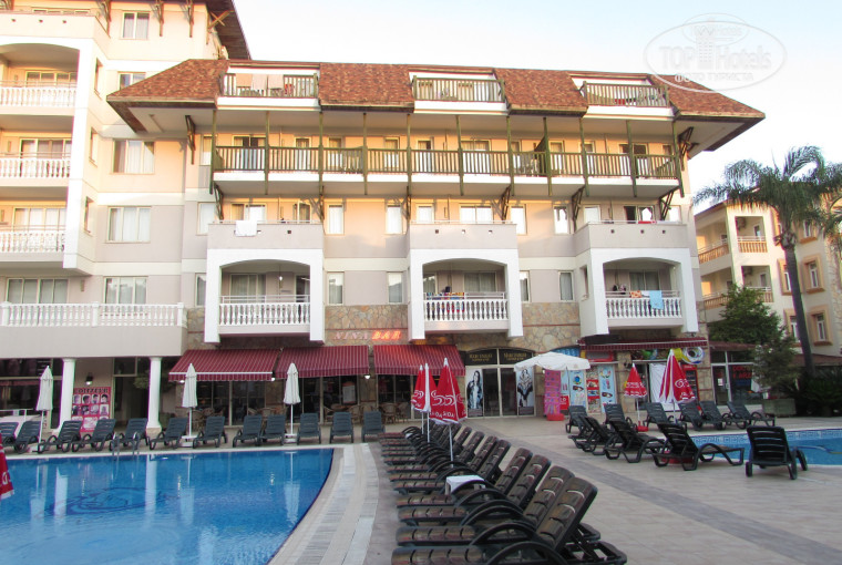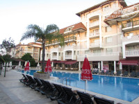 Проживание. Выбрали этот отель в основном из-за заявленных "просторных" комнат, как указано на сайте ТО - комната Superior 48 кв.м, Renovation в 2014 г, а также отзывов ниже про "тихий отель". По факту же оказалось, что подавляющий объем номерного фонда - это старые номера в 3-этажных корпусах, площадью около 30 м. Да, они двухкомнатные, но ужасно тесные и старые, с соответствующим запахом старья. Более просторные номера с частичным ремонтом - только в главном 5-этажном корпусе. Странно, что туроператор не указывает, что в отеле разные номера. Вначале нам предлагали как раз старые тесные номера. Потом предложили номер в главном корпусе на 2 этаже, с окнами на бассейн, над баром (это мы потом уже узнали, что внизу располагается бар). Оказалось очень шумно, громкая музыка почти все время, день и ночь. Через пару бессонных дней и ночей попросили переселить в номер на другую сторону - там немного тише. НО будьте готовы, что с той стороны недалеко располагается мечеть, и ночью призывы к молитве, через каждые несколько часов, в усилители и громкоговорители )) Кроме этого, в номерах очень слабая шумоизоляция и тонкие стены, через которые отлично слышны громкие хлопания дверьми других номеров по коридору, пьяные ночные шумы от соседей и т.д. Ремонт в основном корпусе - на 4-, многое уже поизносилось, в санузлах грибок на стенах и по краям бортиков душевой кабины. Постельное белье крайне изношенное, местами в дырах. Диваны продавленные, кривоватые, спать неудобно. Кондиционер в одной комнате, во вторую прохладный воздух не попадает (( Из плюсов - наличие кухонного уголка, т.к. раннее данный отель работал по концепции апарт-отеля.