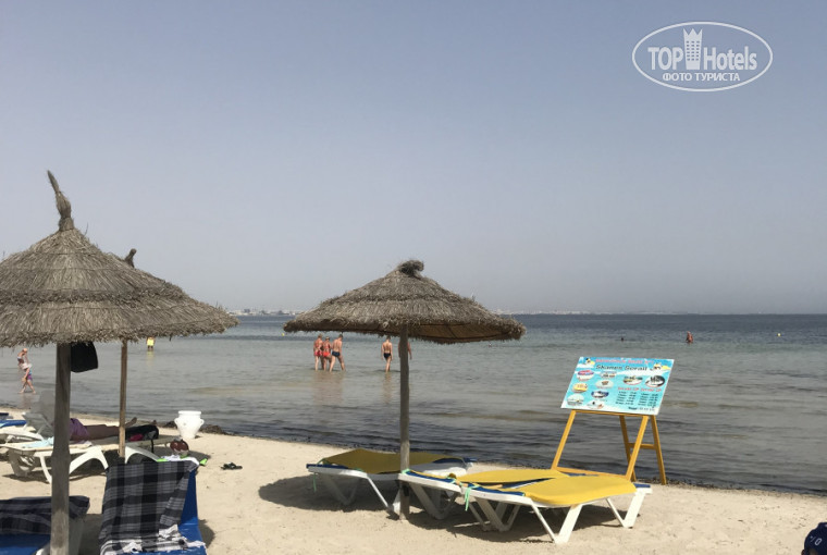 Только вернулись , и пока воспоминания свежи, хочу написать отзыв. В отель мы приехали около 19:30, сразу же отправили нас на ужин. После ужина заполнили всякие бумажки( так что берите ручку), нам выдали номер 358. Номер нормальный, но нас много, поэтому было немного тесно. Наш номер был заявлен, как дуплекс с дверью между номерами, а по факту мы получили 1 номер и дверь в чужой номер. Уборка каждый день, клали по 2 динара каждый день, поэтому в номере всегда было чисто, ставили цветочки) единственное конечно что напрягает-это дискотека, которая работает до 3 ночи... ладно, когда просто Музыка, а вот когда караоке-это вообще не выносимо было слушать полночи. Дети спали в таком шуме, поэтому переселяться мы не стали. когда приезжаете в Тунис, вам сразу говорят, что русских не любят и тд, но по факту я увидела другую картину: все улыбаются, а от младшего вообще все были в восторге (ему 5 месяцев). В отеле много русских, французов, немцев. Кроме Амина( привет!!!! Спасибо тебе за все! Ты молодец!) в отеле , да и за пределами, кроме сувенирных магазинов вас никто не понимает)))) язык в основном французский. Еда отличная, всегда есть выбор, конечно за картошкой фри была очередь, как и везде, где я была. Территория красивая,в бассейн мы не ходили, но там были в основном французы и немцы. Пляж хороший, мелкий и белый песочек, а вот море грязное конечно( много водорослей. Если любите плавать-вам не сюда, море по колено, к буйков по горло, но, чтобы туда доплыть или добраться, надо преодолеть водоросли...бррр... в первый день были маленькие красные медузки, потом только крабики. Около отеля только отель и аэропорт в 2 км, если вам куда то надо, то только такси, которым ещё и объяснить надо куда тебе и зачем... поэтому скучновато. Ребята развлекают конечно народ, но , в основном , у бассейна.