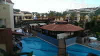по порядку - приехали в гостиницу в 5.00 утра - выдали браслеты и в 7.00 отправили завтракать, но попросили в 8.30 подойти за ключами...зная о том что пересменка в гостиницах как правило в 8.00 то честно даже не надеялась что в следующую смену будет номер...но ближе к 9.00 подошли - новая смена - и номера готовы, причём заверили что номера хорошие и рядом с друзьями...номера 4215 и 4114 в основном здании, одна комната с видом на горки, вторая на бунгало...просторные - каждая комната по 18 кв.м плюс 2 больших балкона. у друзей этажом ниже - одна комната на соседнюю гостиницу, другая на бунгало ( номер поспокойнее так как у них одно детё 4 летнее ) - фотки прилагаються....уборка через день - убирали на 4. бельё и полотенца меняли по требованию.